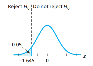 > Determine the critical value(s) for a one-mean z-test. For each exercise, draw a graph that illustrates your answer. A left-tailed test with α = 0.05.