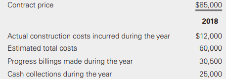 Cosmo Computer Consultants (CCC) signed a contract in 2018 to develop a computer network system for Platinum Entertainment. Cosmo uses the percentage-of completion method and determines its measure of progress using the cost-to-cost approach. The firm provided the following information for 2018.