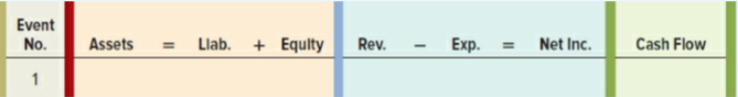 a. Show the effect of the following events on the financial statements by recording the appropriate amounts in a horizontal statements model like the following one. In the Cash Flow column, indicate whether the item is an operating activity (OA), investing activity (IA), or financing activity (FA). Use NA if an element was not affected by the event.