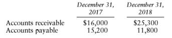 December 31, December 31, 2017 2018 Accounts receivable Accounts payable $16,000 15,200 $25,300 11,800