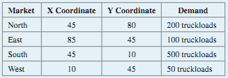 Dansville Cabinets is considering a new warehouse to serve its major markets. Find the center-of-gravity using the following information: