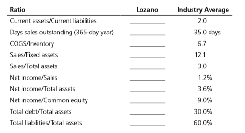 a. Calculate the indicated ratios for Lozano.