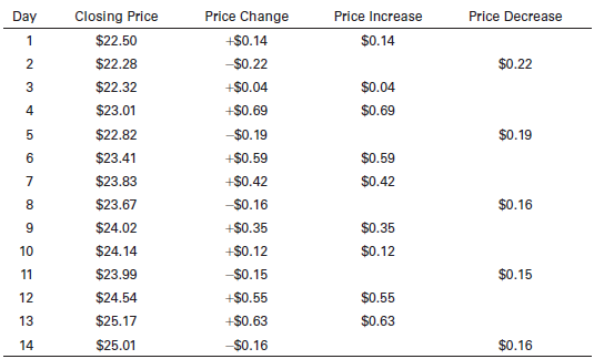 Data on a stockâs closing price and its price change for the last 14 trading days appears below.