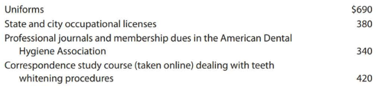 ⢠Ella works at a variety of offices as a substitute for whichever hygienist is i11 or on vacation or when one of the clinics is particularly busy (e.g., prior to the beginning of the school year). Besides her transportation, she must provide and maintain her own uniforms. Her expenses for 2018 appear below.