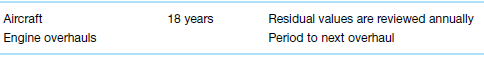Aircraft Engine overhauls 18 years Residual values are reviewed annually Period to next overhaul Aircraft and engines Aircraft spare parts 2.5-20 years 15-20 years 0-20% residual value 0-20% residual value
