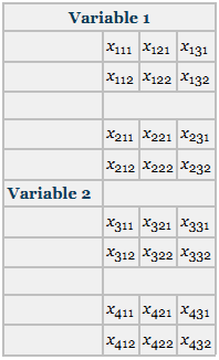 > Examine the structure of the following experimental design. Determine which of the three designs presented in the chapter would be most likely to characterize this structure. Discuss the variables and the levels of variables. Determine the degrees of fre