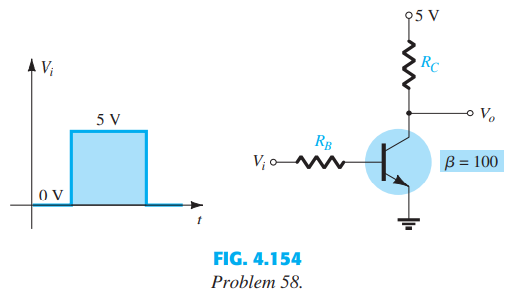 Design the transistor inverter of Fig. 4.154 to operate with a saturation current of 8 mA using a transistor with a beta of 100. Use a level of IB equal to 120% of IBmax and standard resistor values.