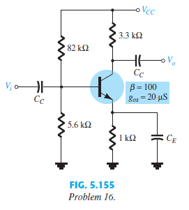 > For the network of Fig. 5.161: a. Determine re. b. Calculate VB, VCE, and VCB. c. Determine Zi and Zo. d. Calculate Av = VO>VI. e. Determine Ai = Io>Ii.
