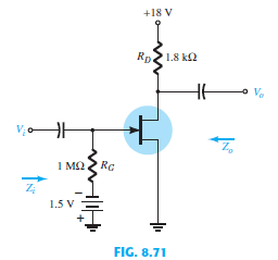 Determine Zi, Zo, and Av for the network of Fig. 8.71 if IDSS = 10 mA, VP = - 6 V, and