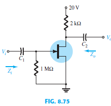> Determine Zi, Zo, and Vo for the network of Fig. 8.76 if Vi = 20 mV.