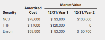Deutsch Imports has three securities in its available-for-sale debt investment portfolio. Information about these securities is as follows: