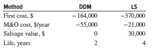 > Two mutually exclusive alternatives have the estimates shown below. Use annual worth analysis to determine which should be selected at an interest rate of 10% per year.