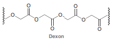 Dexon (below) is a polyester that is spun into fibers and used for surgical stitches that dissolve over time, eliminating the need for a follow-up procedure to remove the stitches. The ester groups are slowly hydrolyzed by enzymes present in the body, and in this way, the stitches are dissolved over a period of several months. Hydrolysis of the polymer produces glycolic acid, which is readily metabolized by the body. Draw the structure of glycolic acid. Provide a systematic name for glycolic acid.