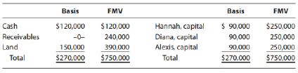 Diana, a partner in the cash basis HOA Partnership, has a one-third interest in partnership profits and losses. The partnership's balance sheet at the end of the current year is as follows.