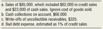 > Beckett Appliance Repair, Inc., ended December 2017 with Accounts Receivable of $2,400 and a debit balance of $175 in Allowance for Uncollectible Accounts. During January 2018, Beckett Appliance Repair, Inc., completed the following transactions: Requi
