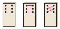 Dominos Consider a domino with six dots as shown. Two ways of connecting the three dots on the left with the three dots on the right are illustrated. Using three lines, in how many ways can the three dots on the left be connected with the three dots on the right?