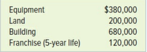 $380,000 Equipment Land Building Franchise (5-year life) 200,000 680,000 120,000
