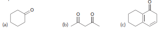 > Draw the enolate ion that is formed when each of the following compounds is treated with sodium ethoxide. In each case, draw all resonance structures of the enolate ion and predict whether a substantial amount of starting ketone will be present together