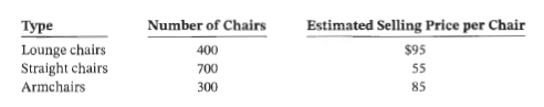 During 2020, Buildit Furniture Limited purchased a railway carload of wicker chairs. The manufacturer of the chairs sold them to Buildit for a lump sum of $59,850, because it was discontinuing manufacturing operations and wanted to dispose of its entire stock. Three types of chairs are included in the carload. The three types and the estimated selling price for each are as follows: