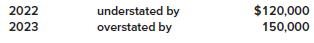 > In 2024, Waterway International, Inc.’s controller discovered that ending inventories for 2022 and 2023 were overstated by $200,000 and $500,000, respectively. Determine the effect of the errors on retained earnings at January 1, 2024. (Ignore income tax