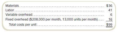 > Alpena Corporation manufactures smartphone and tablet cases. The following is the cost of each unit. Decatur Devices has approached Alpena with an offer to buy 3,000 cases at a price of $17.50 each for its new specialty tablet designed for healthcare wor