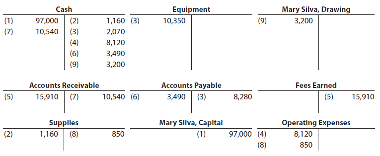 > Simmons Consulting Co. has the following accounts in its ledger: Cash; Accounts Receivable; Supplies; Office Equipment; Accounts Payable; Michael Short, Capital; Michael Short, Drawing; Fees Earned; Rent Expense; Advertising Expense; Utilities Expense; M