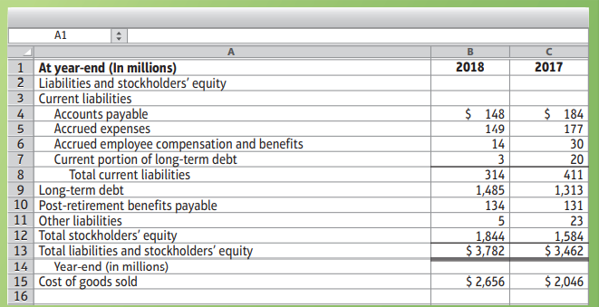 > Green Earth Homes, Inc., builds environmentally sensitive structures. The company’s 2018 revenues totaled $2,770 million. At December 31, 2018, and 2017, the company had, respectively, $663 million and $613 million in current assets. Th