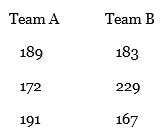 Estimating Weights In a tug of war, the weight of the members of the two three-person teams is given below. Estimate the difference in the weights of the teams.