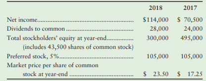 > For 2018 and 2017, calculate return on sales, asset turnover, return on assets (ROA), leverage, return on common stockholders’ equity (ROE), gross profit percentage, operating income percentage, and earnings per share to measure the abi