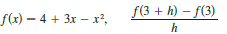 f(3 + h) – f(3) f(x) – 4 + 3x – x², h