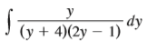 > Evaluate the integral. 4y? — Ту — 12 dy Л у(у + 2)(у — 3)