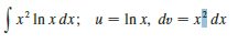 > Evaluate the integral using integration by parts with the indicated choices of u and dv.