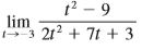 > Evaluate the limit and justify each step by indicating the appropriate Limit Law(s). - 2 lim 2 13 – 3t + 5 12 – 2