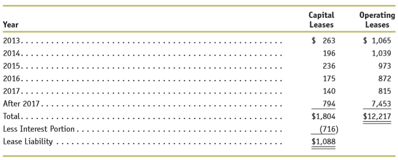 a. Assume that Northern Airlines makes all lease payments at the end of each year. Prepare an analysis that explains how the capital lease liability decreased from $1,088 million on December 31, 2012, to $927 million on December 31, 2013.