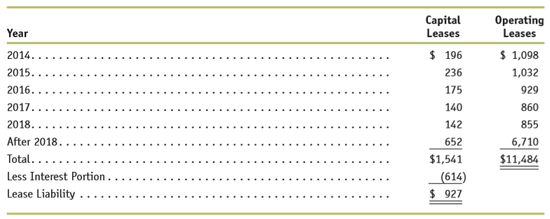 Excerpts from the notes to the financial statements of Northern Airlines for two recent years reveal the following (amounts in millions). Northern Airlines uses the current/old rules of accounting for its leases.