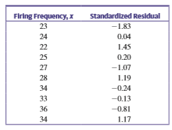Firing Frequency, x Standardized Resldual 23 -1.83 24 0.04 22 1.45 25 0.20 27 -1.07 28 1.19 34 -0.24 33 -0.13 36 -0.81 34 1.17 Firing Pleasantness Firing Pleasantness Frequency Rating Frequency Rating 23 0.2 28 2.0 24 1.0 34 2.3 22 1.2 33 2.2 25 1.2 36 2.4 27 1.0 34 2.8