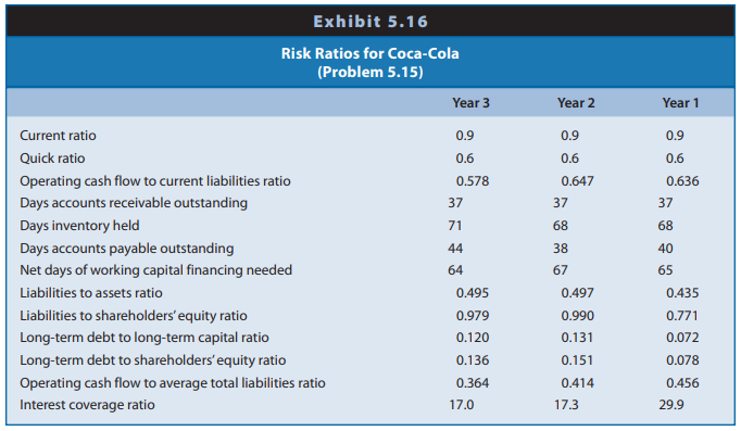 Exhibit 5.16 presents risk ratios for Coca-Cola for Year 1 through Year 3.