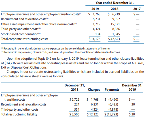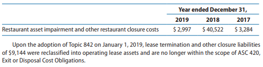 Upon the adoption of Topic 842 on January 1, 2019, lease termination and other closure liabilities of $9,144 were reclassified into operating lease assets and are no longer within the scope of ASC 420, Exit or Disposal Cost Obligations.