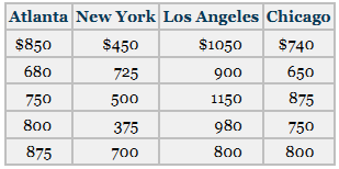 > Do multiple comparisons on the data in Problem 11.14 using Tukey’s HSD test and α = .05. State which pairs of cities, if any, have significantly different mean costs.