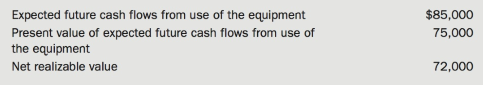 Expected future cash flows from use of the equipment $85,000 Present value of expected future cash flows from use of the equipment 75,000 Net realizable value 72,000