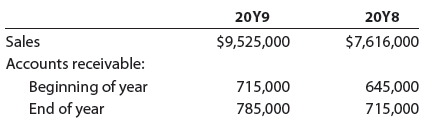 b. Determine the daysâ sales in receivables for 20Y9 and 20Y8. Use 365 days and round to one decimal place.