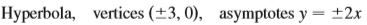 Hyperbola, vertices (±3, 0), asymptotes y = ±2x