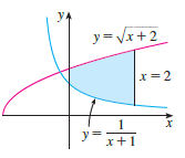 > Find the area of the shaded region. yA x= y?- 2 y=1 x= e y=-