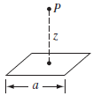 Find the electric ï¬eld a distance z above the center of a square loop (side a) carrying uniform line charge λ (Fig. 2.8). [Hint: Use the result of Ex. 2.2.]
