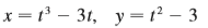 > Find the points on the curve where the tangent is horizontal or vertical. If you have a graphing device, graph the curve to check your work. x = t³ – 31, y =t} - 3t²