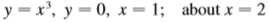 > Set up an integral for the volume of the solid obtained by rotating the region bounded by the given curves about the specified line. Then use your calculator to evaluate the integral correct to five decimal places. (a)