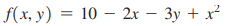 > Let ((x, y) = 5 - 2x + 4y - 3x2 - y2 . (A) Find the maximum value of ( (x, y) when x = 2. (B) Explain why the answer to part (A) is not the maximum value of the function ( (x, y).