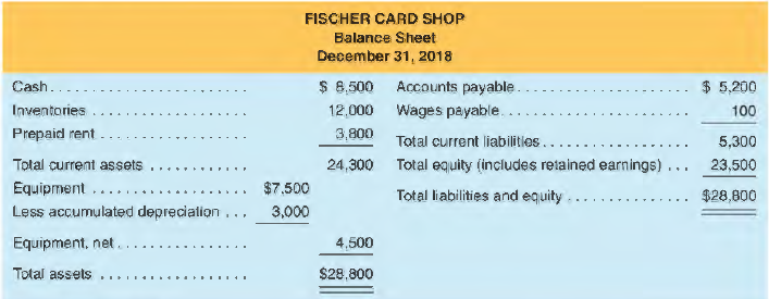 Fischer Card Shop is a small retail shop. Fischer's balance sheet at year-end 2018 is as follows. The following information details transactions and adjustments that occurred during 2019.