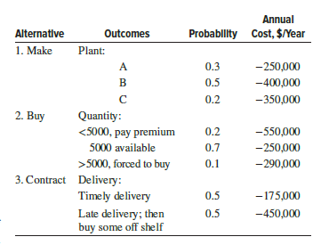 (a) Construct and solve a decision tree to determine the least-cost alternative to provide the components.