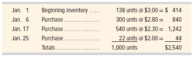 > QP Corp. sold 4,000 units of its product at $50 per unit during the year and incurred operating expenses of $5 per unit in selling the units. It began the year with 700 units in inventory and made successive purchases of its product as follows. Required